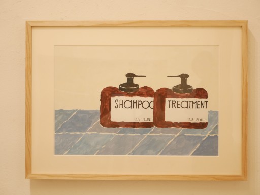 あと「シャンプーとトリートメント」の作品もお気に入りです。ふたつのボトルが並ぶ様子を見ていたら、なんとなく人に見えてきて。寄り添うふたりのような雰囲気を感じて、少し擬人化するような気持ちで描きました。