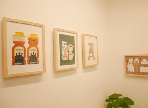 「暮らしの中のささやかな瞬間」をテーマにした展示は、れのすかさんらしいやわらかいトーンと、ふと心に残る“日常のひとコマ”が並んでいます。