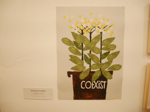 「この形、うちにもあります!」とか「この色の感じが落ち着く」といった声をいただきました。自分の中の記憶を描いたつもりが、見る人それぞれの記憶と重なる瞬間がある。その“共通の記憶”みたいなものを感じられたのが、とても嬉しかったです。あと今回の個展では、来場者の方が“葉っぱとお花のシール”を貼って完成させる体験型展示もあって。最終日どんなお花になるのか、私自身もすごく楽しみです。