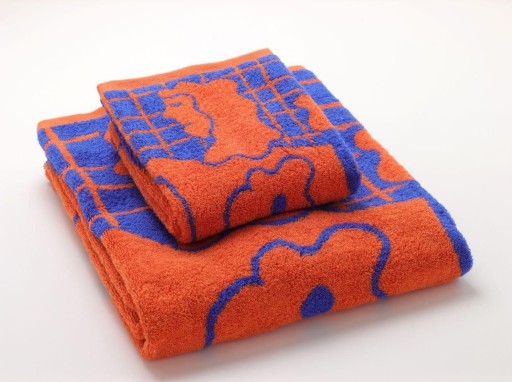 タオルの土台となる下糸は、一般的には白色。でもそれをタオルの上糸と同じオレンジ色にして、端っこまで統一感を出すことで、アートとしての完成度を高めているnorahiさんコラボタオル。機械の下糸を変えるのは一日がかりの大仕事で、効率重視のタオルづくりではなかなかできないことなのだそう。
