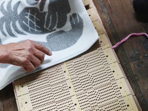 シャトル織機でタオルの柄を表現するのに必要な、「紋紙」と呼ばれる設計図のようなもの。最新機械ではデジタル化されているため、今は紋紙を作れる職人さんもかなり減ってきているそう。