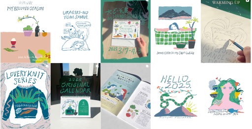 1994年海の日生まれ。愛知県立芸術大学デザイン学部卒。広告制作のディレクターとして企業に勤務ののち、2022年に独立。植物、うつわ、ことばをモチーフに有機的なタッチで描く。