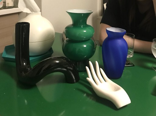 形や色が印象的な花瓶やオブジェたち。