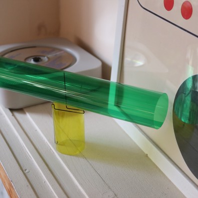 目に見えない空気の流れを受けて、緑色の筒部分がゆっくりと回る様子は、何も考えずにぼーっと眺めていると、ふっと肩の力が抜けてリラックスできます。