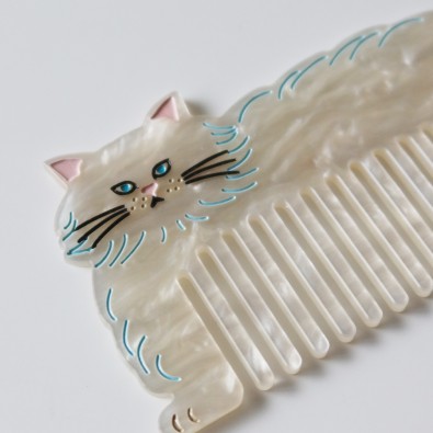 セットのコームも、同じ白ネコがモチーフに。毛並みみたいな表情のあるアクリル製で、ビンテージな雰囲気がとってもキュート。
