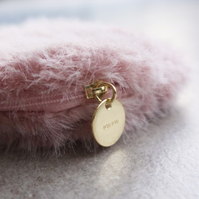 PALE PINKのくすみカラーがかわいい、テディベアのお顔のファーチャームポーチ。