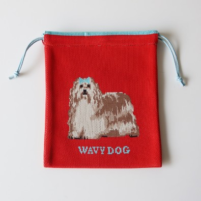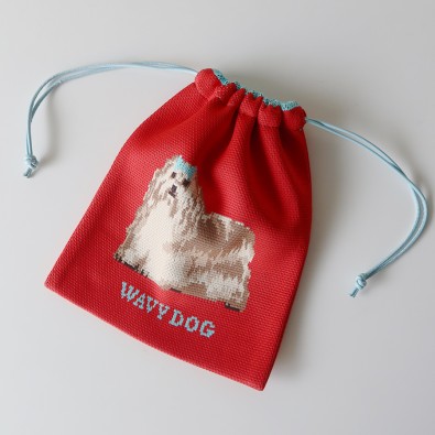 キッチュな世界観の雑貨ブランド《JOliJOli / ジョリジョリ》から、ウェービーな毛並みがかわいいワンコを表現したジャガード編みの巾着をお届け。
